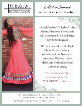 GROW Ministry is assisting with the Ashley Samuel Memorial Scholarship award. This is for graduating high school seniors who meet the criteria. Applications can be found in the attached link:https://thegrowministry.com/ashley-samuel-scholarship/